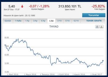 –Piyasa değeri son üç senede yarı yarıya azaldı. Borsa İstanbul’da Ocak 2014’te 10,10 TL’den işlem gören hissenin en son fiyatı 5,34 TL civarında.