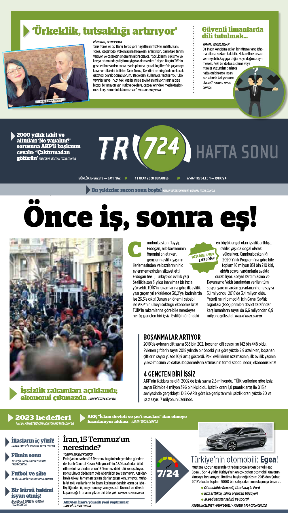 Tr724 | 11 Ocak 2020 Haftasonu 1.SAYFA