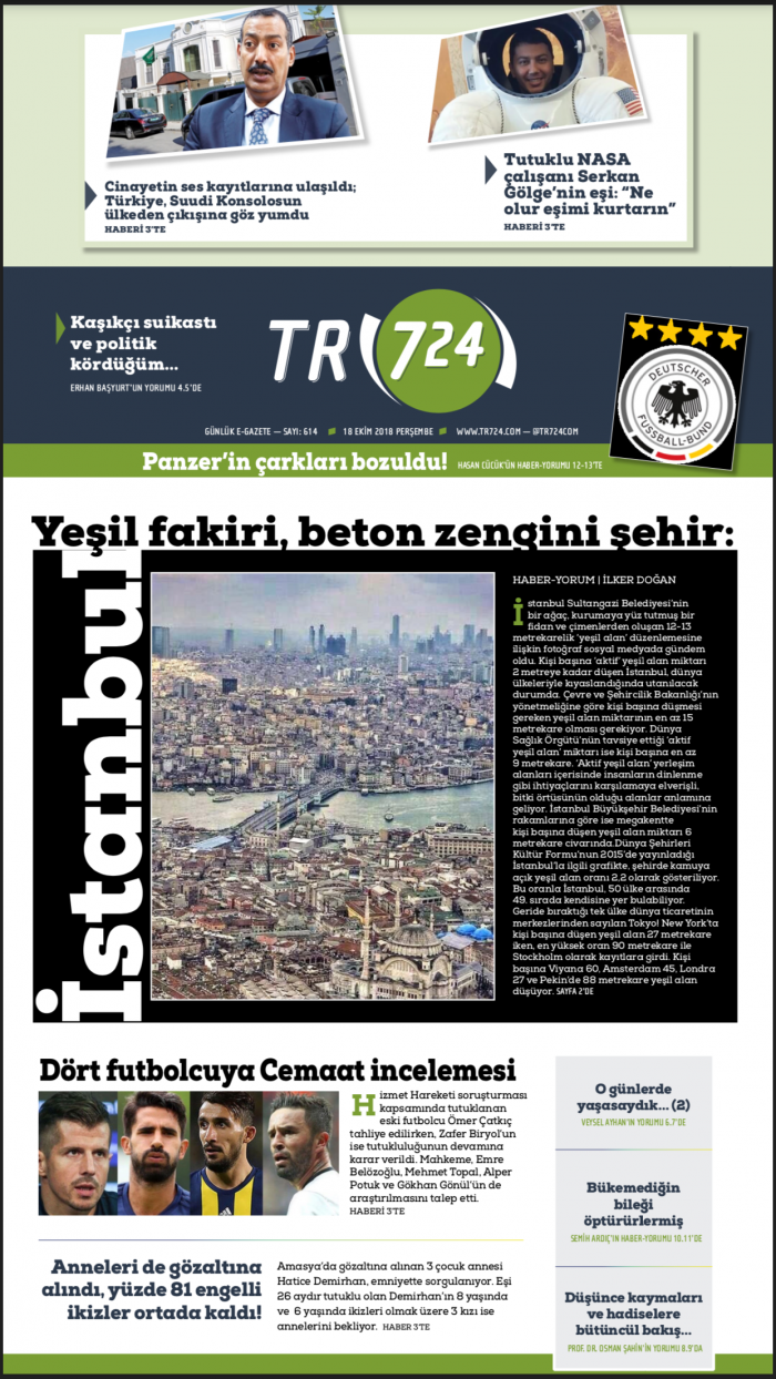 Tr724 | 18 Ekim 2018 Peşembe Gazeteniz