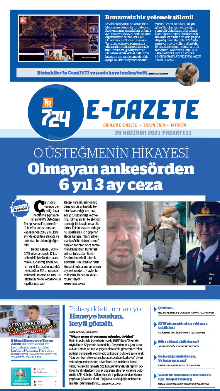 Tr724 | 28 Haziran 2021 Pazartesi 1. SAYFA
