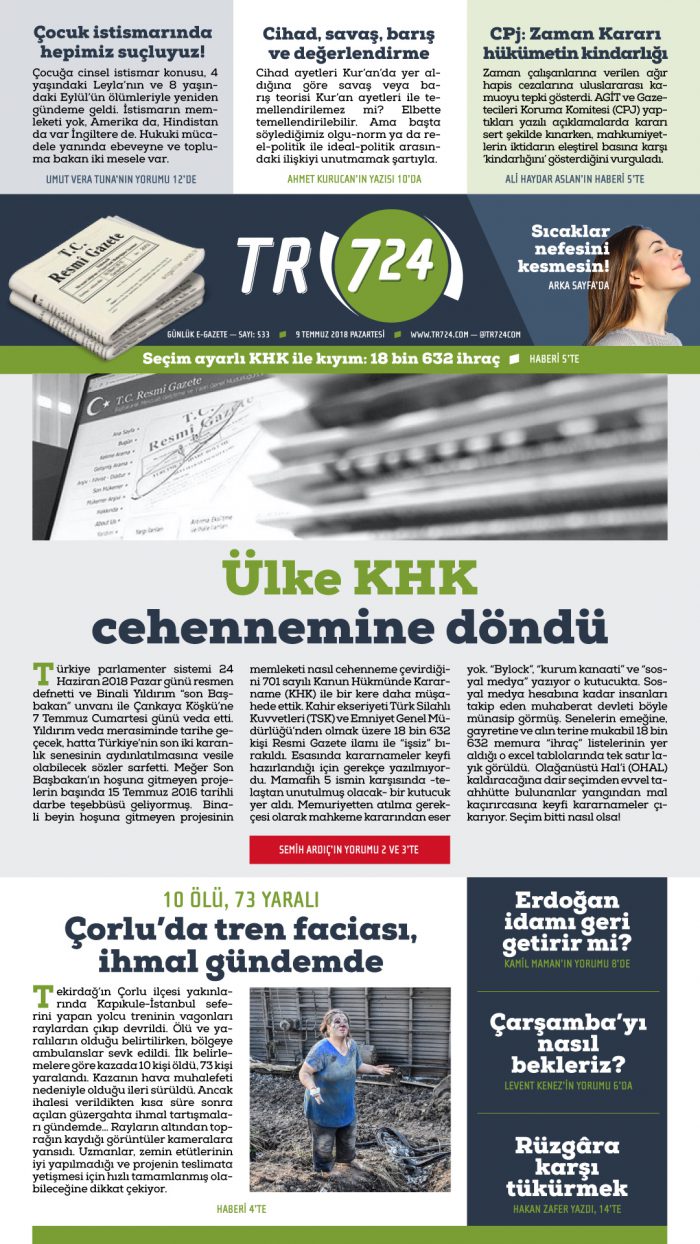 Tr724 | 9 Temmuz 2018 Pazartesi Gazeteniz