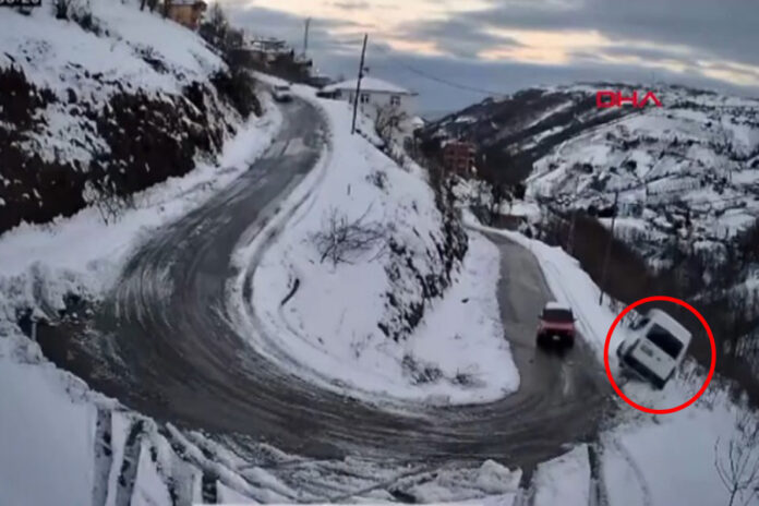 Trabzon’un Akçaabat ilçesinde, karlı yolda sürücüsünün virajı alamaması sonucu dereye yuvarlanan minibüste bulunan Muhsin Reşat Özkurt (60) hayatını kaybederken 1 kişi yaralandı. Kaza anı güvenlik kamerasına yansıdı.