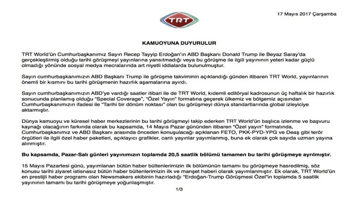 Erdoğan’ın ABD’ye yaptığı ziyareti ve ABD Başkanı Trump ile olan görüşmesini, yeterince ekrana yansıtmadığı gerekçesiyle yandaşlar tarafından eleştirilen TRT’den açıklama geldi.