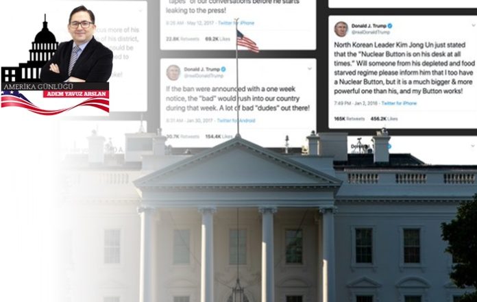 Türkiye’de Erdoğan ‘gık’ diyenin tepesine çökerken (Cumhurbaşkanına hakaret iddiasıyla on binlerce soruşturma açıldı, binlerce dava var) mevkidaşı Trump dava filan açamıyor. Ancak twitter’da gazetelere, gazetecilere saldırıyor.