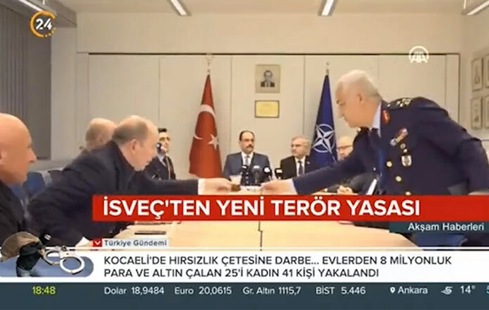 Belçika’nın başkenti Brüksel gerçekleşen NATO toplantısında TSK’yı temsil eden Tümgeneral Göksel Kahya, toplantı sırasında boş çay bardaklarını topladı. Tümgeneral Kahya çay bardaklarını toplarken AKP’li Cumhurbaşkanı RErdoğan’ın sözcüsü İbrahim Kalın’ın izlemesi dikkat çekti.