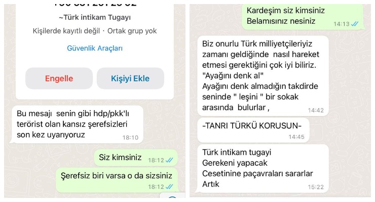 İstanbul Başakşehir’de Kürtçe kitap satan bir dükkânı işleten ve HDP üyesi olan Erkan Güngör, Türk İntikam Tugayı’nda (TİT) ölüm tehdidi aldı. Güngör’ün cep telefonuna yaklaşık 10 gün önce yollanan mesajda “Bu mesajı senin gibi HDP/PKK’lı terörist olan kansız şerefsizleri son kez uyarıyoruz” dendi. Bu mesajdan birkaç gün sonra tehdit içerikli bir mesaj daha yollandı.