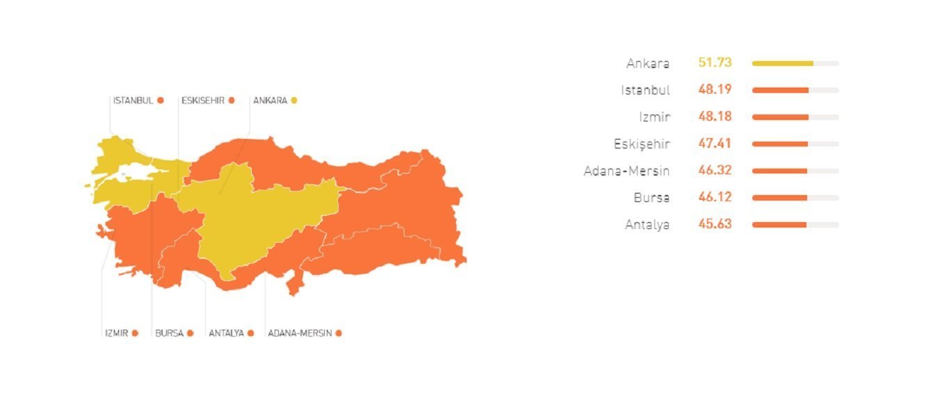 Araştırmaya göre Türkiye’de İngilizce düzeyinin en yüksek olduğu il Ankara. Onu İstanbul, İzmir ve Eskişehir takip ediyor.