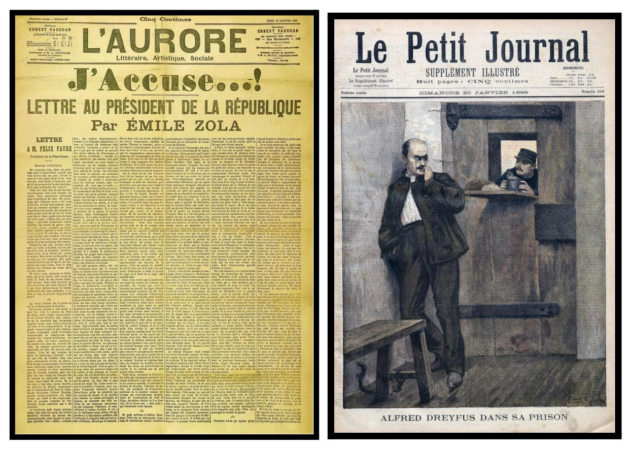 Yazar Émile Zola, L’Aurore gazetesinde ‘J’Accuse…! (Suçluyorum)’ başlıklı açık mektubu sonrası davanın seyri değişir. J’accuse! dünyanın en iyi bilinen gazete makalelerinden birisidir. Zola tarafından Dreyfus olayına cevaben 13 Ocak 1898 tarihinde L’Aurore gazetesinde, Fransa Cumhurbaşkanı Félix Faure’ye hitaben yazılmış açık bir mektuptur.