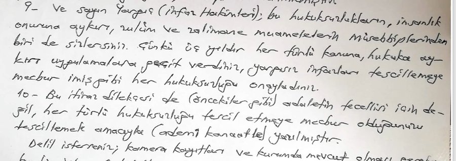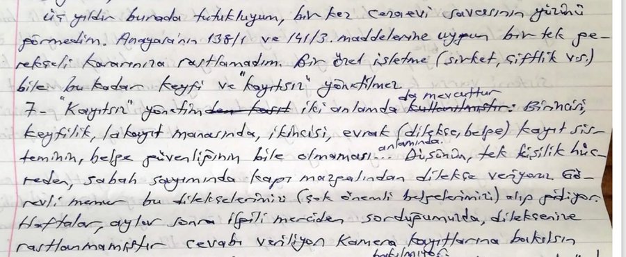 “İçeri girip sonradan tahliye olanlardan ya da yurtdışına çıkanlardan susan uğraşmayan boş oturan bizi unutan keyfine bakan kim varsa da hakkımı helal etmiyorum” dedi. Bunu da aynen böyle yaz “3 yıldır hücrede kalan bir yüksek yargıcın onlara sitemidir” dedi.”