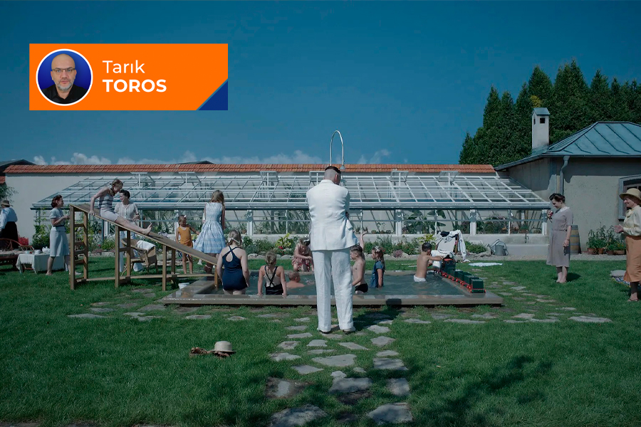 The Zone of Interest’i seyrettim. Onunla bitireyim. Sayısız ödülü olan yılın filmlerinden biri. Britanya yapımı fakat Almanca. Bir kampın duvarına komşu evdeki yaşamı izliyorsunuz. Geniş ve hareketsiz kamera açılarıyla akan bir film. Bahçeli, havuzlu, hizmetçili bir ev. Rüya gibi bir yaşam. Böyle başlıyor. Dakikalar içinde evde Rudolf Höss ve ailesinin oturduğunu, kampın ise Auschwitz olduğunu öğreniyorsunuz. En az 2.5 milyon kişinin ölümünden sorumlu Höss, kampın komutanı. Kamptaki vahşet, uzaktan gelen seslerle tasvir ediliyor, felaketi göstermeden anlatıyor.