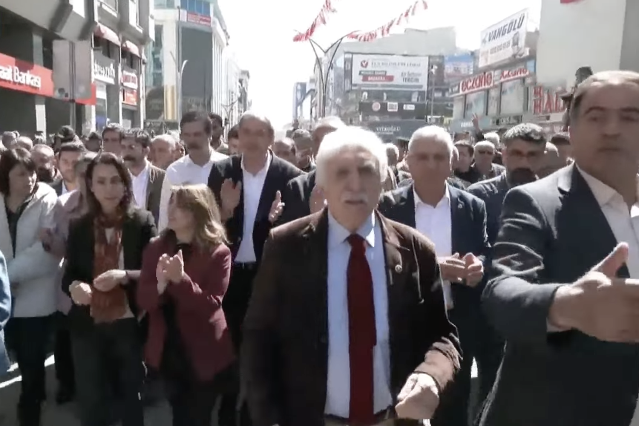 MYK toplantısını Van’da yapan DEM Parti Eş Genel Başkanları Tülay Hatimoğulları ve Tuncer Bakırhan, kente gelen siyasiler ile birlikte AKP’nin seçim darbesine karşı yürüyüşe geçti. Kentteki Perihan AVM önüne gelen çok sayıda isim ve kurum temsilcisi Fegiye Teyran Parkı’na doğru yürüyüşe geçti.