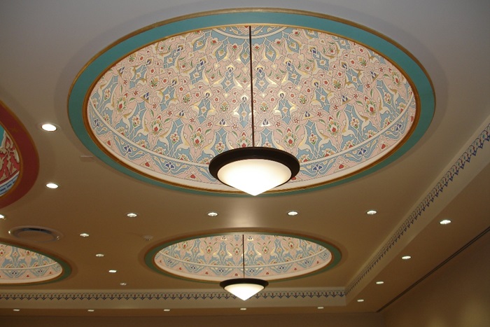Bir çok duvar resmi yapmış ve pek çok caminin tezyinatını nakkaş arkadaşlarımla birlikte üstlenmiştik. O sırada, bu müfteri havuz medyasının sık sık “saray” olarak tanıttığı Pensilvanya’daki Kültür Merkezi yeni inşa ediliyordu. Ben de, ana salon olarak düşünülen mekânın tavanındaki sekiz küçük bir büyük kubbeyi görünce ekibimle beraber bir tasarım hazırladım ve Hocaefendiye arz etmek istedim. Kendileri: