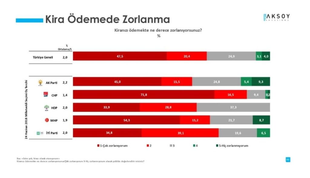 Aksoy, Cumhuriyet gazetesi için kaleme aldığı değerlendirmede, kirasını öderken çok zorlandığını söyleyenlerin oranının yüzde 47.5 olarak ölçüldüğünü ifade etti.