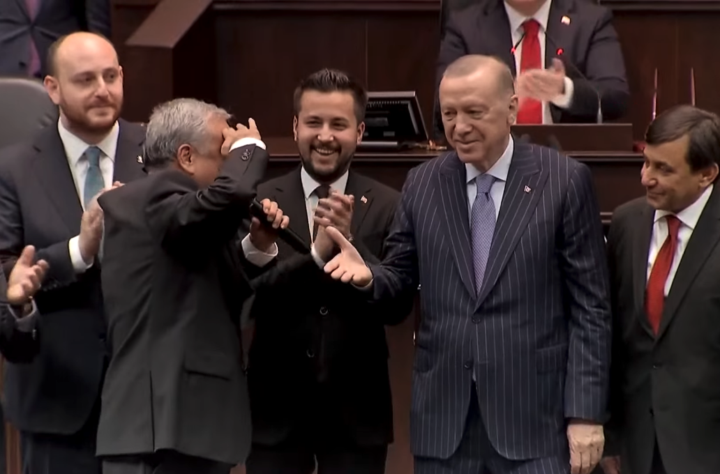 Kürsüde Erdoğan’a bir asker selamını çaktı. Ne diyelim, hayrını görsün… Batan geminin son yolcularından biri olduğunu çok geçmeden anlayacaktır. Batan geminin malları olarak yeni pazarlarda satışa çıkar. Gerisini alıcısı düşünsün.