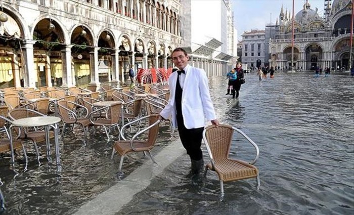 İtalya’nın kanallarıyla ünlü turistik kenti Venedik’te, yoğun yağış ve kuvvetli rüzgârların da etkisiyle sokakların büyük bölümü sular altında kaldı. Deniz seviyesinin yaklaşık bir buçuk metre yükseldiği Venedik’te turistler, çizmeleriyle kenti gezmeye çalıştı. Su baskınlarından en az 6 kişinin öldüğü belirtiliyor.