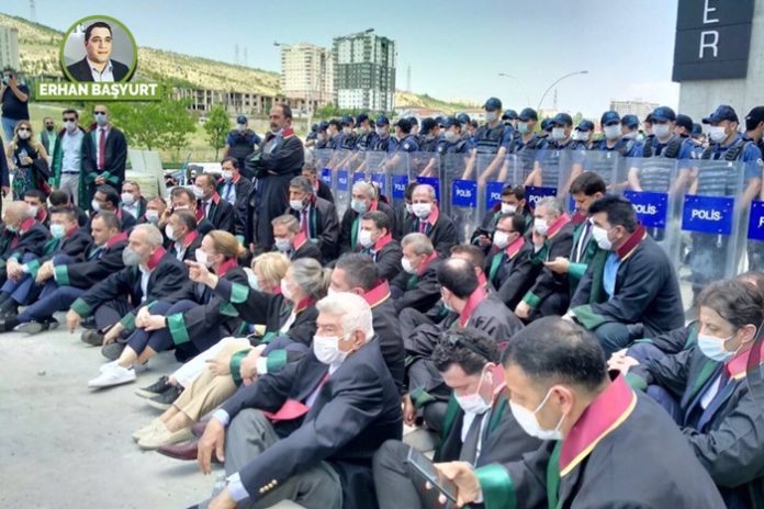 Dün meslektaşları haksız ithamlarla hapse atılırken sessiz kalan 60 ilin baro başkanları, dün hakları ihlal edilen KHK’lı ve HDP’liler için sessiz kalan baro başkanları bugün kendileri de şehre sokulmuyor…