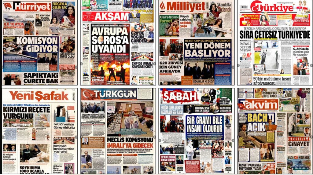 İktidara yakınlığıyla bilinen Sabah, Türkiye, Yeni Şafak, Yeni Akit, Takvim, Akşam gazeteleri ‘Terörsüz Türkiye’ süreci kapsamında komisyonun İmralı’ya ziyaret etme kararını manşetten vermemeyi tercih etmesi dikkat çekti.