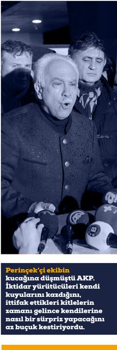 Yargıdaki ittifak sahiplerinin gözünde Türkiye’nin demokratik kazanımlarının ve özgürlükçü yürüyüşün hiçbir anlamı yoktu. Zaten AB düşmanı ve Batı karşıtı idiler. Üstelik Cemaat’i yok etmeye kilitlenmişlerdi. Daha doğrusu, projenin asıl sahipleri onlara bu görevi vermişti. Perinçek’çi ekibin kucağına düşmüştü AKP.  İktidar yürütücüleri kendi kuyularını kazdığını, ittifak ettikleri kitlelerin zamanı gelince kendilerine nasıl bir sürpriz yapacağını az buçuk kestiriyordu.