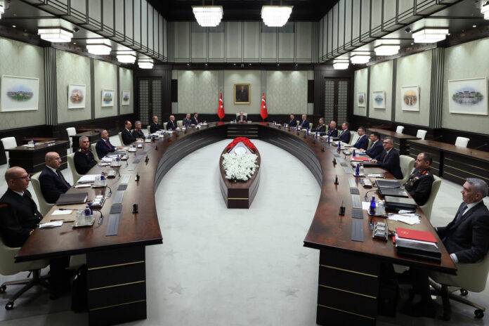 Milli Güvenlik Kurulu (MGK), dün süreç komisyonunun terör örgütü PKK lideri Abdullah Öcalan ile İmralı’da yaptığı görüşmenin ardından bugün AKP’li Cumhurbaşkanı Recep Tayyip Erdoğan başkanlığında Cumhurbaşkanlığı Sarayı’nda toplandı.