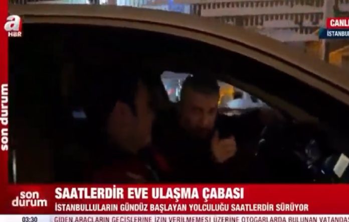 İstanbul’da şiddetli kar yağışı nedeniyle trafik felç olurken binlerce vatandaş yollarda mahsur kaldı. İstanbul’da trafikte mahsur kalan vatandaşları görüntüleyen AKP iktidarının yayın organı A Haber muhabiri canlı yayında beklemediği bir tepkiyle karşılaştı.